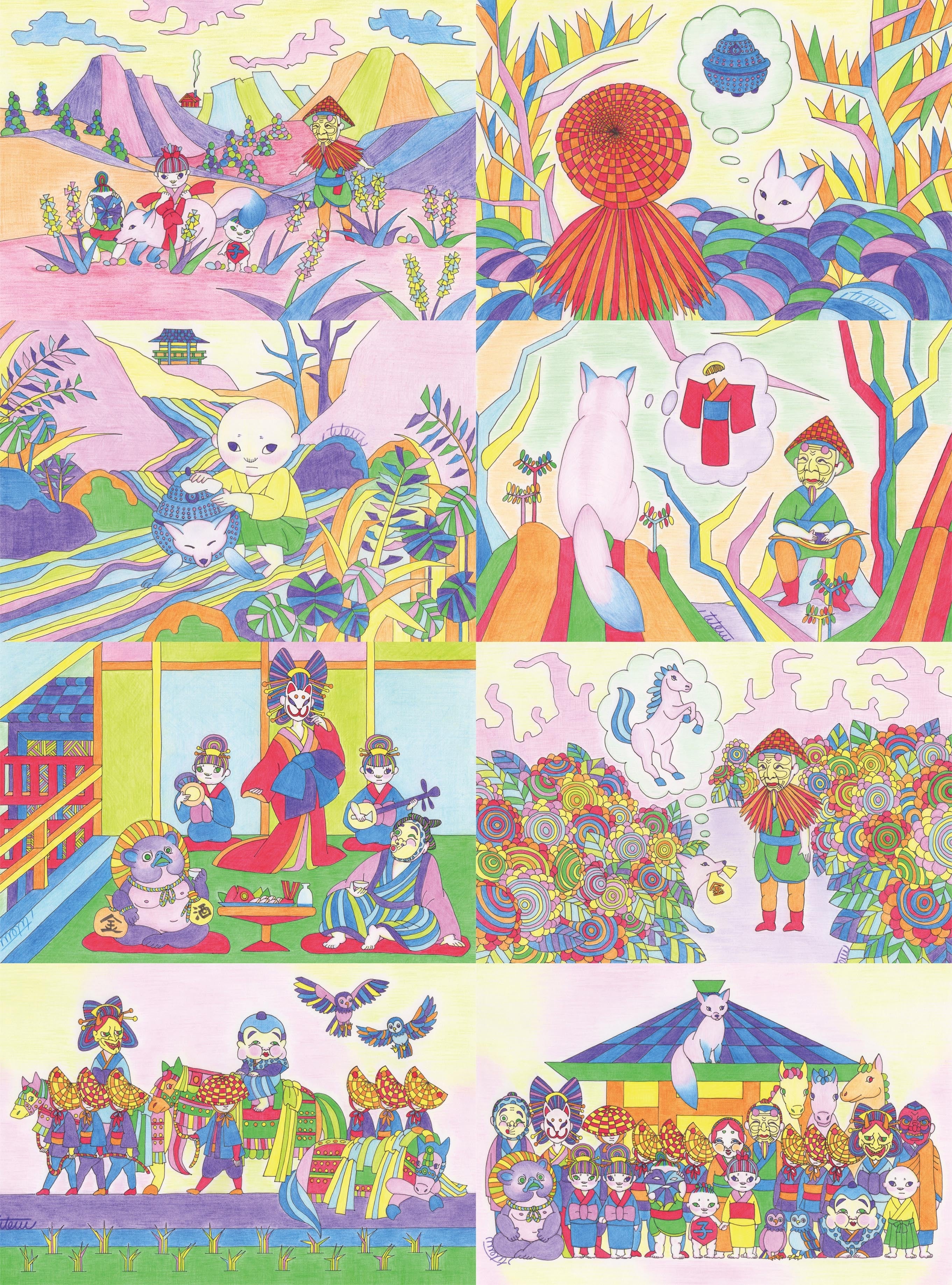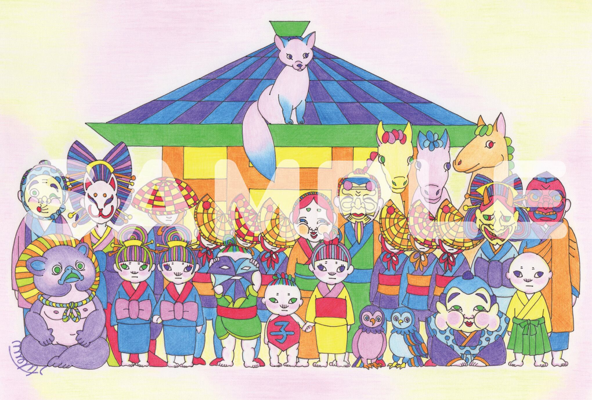 その演目に合わせて自身が描いた紙芝居を、ポストカードセットにしました。