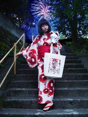御朱印風デザインをプリントしたトートバッグ。