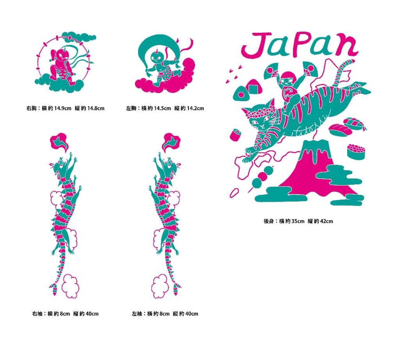 右胸、左胸、右腕、左腕、背中に各2版ずつ、
